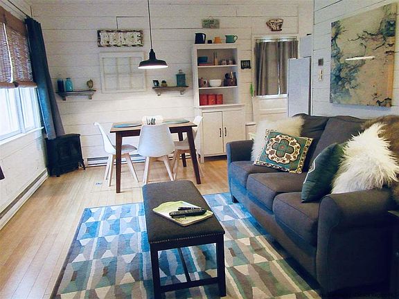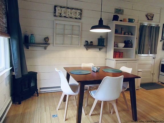 IT'S THE WHITE COTTAGE WITH THE YELLOW DOOR!!! Looking for an especially sweet treat, totally convenient to all of Woodstock's amenities, absolutely adorable cottage with everything you need included in "studio-style" cottage loved and maintained with care. Perfect get-away for those who do not have a car, there is a bus route and within close proximity one will find restaurants, health food store, golf course, art galleries & coffee shops! Within this gem of a cottage, you can relax & enjoy every moment of your Woodstock Get-Away. Cozy little electric stove provides romantic charm in dining area. You'll find Bamboo Flooring throughout & Ceramic Tile in Bathroom. Possibility for use as short term rental, efficiently updated by current owners. Naturally comfortable & Move-in Ready....lots of light, many windows, sleeping area can by upstairs in loft-like attic space, which is the way current owners prefer or place your bed on main level. Beautiful white bathroom is nicely tiled & renovated.