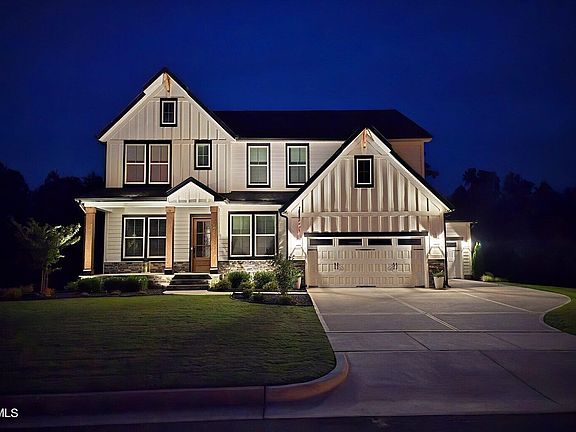 Gorgeous North facing Farmhouse style Vanderburgh floorpan with AWESOME tweaks and upgrades! Look at this yard! Carefully curated grass and landscaping with above ground sprinklers with timers. Black aluminum fence with gates on each side. Custom landscape lighting and uplighting. Once you walk into the home from the covered porch, you walk into 10 foot ceilings with 8 foot doors on the maint level and 9 foot ceilings on second. LVP flooring and upgraded tile only in home! Walk into the house and see the beautiful view of private lot with view of water retention pond and trees! Sellers had 12 foot Western slider door put into home that opens to deck, want the shade down? Use the remote and your shades come down, we also have in the Primary bedroom. Seller upgraded the appliances to Kitchen Aid (they left the hood draft Whirlpool for aesthetic reasons, it does blow outside)Kitchen Aid stainless steel dishwasher, wall oven and convection microwave. The gas range has 8 burners. Quartz countertops and Island! Also has beautiful natural stone backsplash in a diamond pattern. Eat in Kitchen with screened porch access. This overlooks lush backyard grass is fenced in and view is great! Family room with timber beams, gas log fireplace and nook with timber shelving. First floor bedroom with a FULL bath right outside of the door for guests to use or for bedroom. Drop zone and ''butler like pantry'' area when you walk in from the garage! As you walk up the LVP stairs you walk up into the large bonus area loft! The laundry with with sink and cabinets is also on the second floor. 3 full baths on second floor. Two bedrooms and the bonus to share the full bath in the hallway. One bedroom with private bathroom. Then HUGE Primary bedroom with DUAL walk in closets that are very nice sizes. Private water closet and large walk in shower. All of the bathrooms except one have linen closet in bath! Blinds in home. New ceilings fans thru out with remotes. All rooms have cable pass through behind walls for cable, TV mount in family room above fireplace does not convey, goes with TV. Wall to be restored. Gas line plumbed for grilling on deck that was added in 2023 with permit. Not only is there a 3 car garage, BUT also extend workshop area WITH the three car garage. Garage is finished with epoxy flooring, painted and with many extra strategically placed outlets for the person who likes to do projects, work in garage. Along with upgraded LED lighting inside and camera's to watch over your vehicles, tools and equipment!Please note the only rack/shelving that conveys is one above workshop cabinets. All other hooks, tool holders or antique shelf in garage will be removed and walls returned to match surrounding walls. The workshop cabinets are not staying nor is the shop vac. Please note when looking at the drone shots to be left of the property with a circular access drive on parcel is pond access plant. The landscaping was recently planted and is owned by the City of Holly Springs. This is not going to be built on we have been told, It is an easement to access the pond for Pond Management . Which is one of the reasons the seller bought the property and loved how they would never have anything built next to them. Beautiful private back view and only one neighbor on right. Profressional floorpan/Measurement should be in 7/9. I am using the TAX square footage until my measurements come back from company.