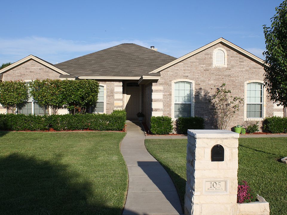 This beautiful 1885 square foot home was built in 2008 in a golf course community. It has 3 bedrooms, 2 baths and an office located right off the living room. As you walk into the house, you will enjoy the ceramic tiled floor living room featuring chair rail with white trim and a wood burning fireplace. There is a 9x9 office off of the living room. The kitchen has great features including a stove and a built-in microwave. The kitchen sink is at the corner with two windows above for viewing back yard. The dining area sets right off the kitchen looking into the living room. The master bedroom has laminate. The tiled master bath has a garden tub, separate shower, double vanity and a large 8x9 foot walk-in closet. The other two bedrooms measure 12X11 and 11x9 feet. Each room features a nice size closets. The 9x7 foot utility room is by the garage area with cabinets above the oversized washer and dryer area. Also you will find a nice storage area with a flat surface to fold your clothes. The exterior has that great curb appeal with landscaping at front. The back covered patio, with fans, is even large enough to do some great entertaining on or just sit and watch the sun set. In the backyard you will discover a play set, 10x10 storage shed and privacy fencing to the right and left of the house with chain link across the back yard. 207362