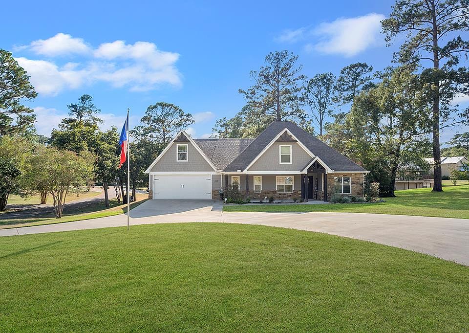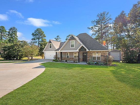 Beautiful 2-story waterfront home in the desirable Forest Hills subdivision on Lake Sam Rayburn! This open-concept home offers spacious living, kitchen, and dining areas with separate walk-in pantry and laundry rooms off the kitchen. Built on a solid slab foundation with rebar and 22 drilled piers for lasting stability. Features 4 bedrooms, 3.5 baths, and a 2-car garage with front and rear access. The gently sloping lot leads to the water with a scenic parkway between the property and the water's edge for added beauty and water access. Two bedrooms down, two up, including a large bonus room ideal for extra beds, games, or TV space. Enjoy the patio with lake views and two kitchen/cook areas—one on the patio and one in the garage. Forest Hills HOA includes tennis courts and a community pool. Note: Water levels are currently low due to dam maintenance—see photos for typical water levels. Perfect for entertaining, relaxing, and soaking up the best of Sam Rayburn lake life!