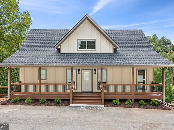 Tucked along the banks of the Cartecay River, this home captures what mountain living is all about. Peaceful mornings, open space, and the sound of water just outside your door. The property sits at the end of a private scenic driveway that winds through trees before opening to a home that feels welcoming from the start. Inside, you're greeted by an open layout filled with natural light. A stone fireplace anchors the main living area, while large windows frame views of the woods and river beyond. The kitchen is bright and functional, with plenty of space for gathering and cooking together. Just off the living area, the dining area offers a perfect year-round retreat with walls of glass overlooking the water. Step outside and you'll find generous decks and a covered outdoor area ideal for entertaining or relaxing by the fire. The gently sloping backyard leads to your own riverfront, complete with a firepit and easy access for fishing, tubing, or simply unwinding beside the water. Every part of this property has been designed to make you feel at home ? whether you?re watching the seasons change from the porch or enjoying a quiet evening under the stars. Just minutes from downtown Ellijay, yet tucked away enough to feel like your own hidden getaway