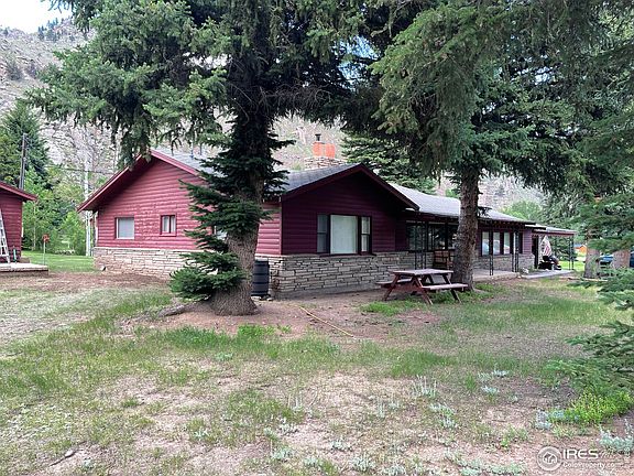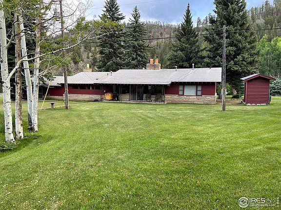 The most quintessential Poudre Canyon Cabin meets year-round usability and comfort; they just don't come like this! On a quiet corner lot generously spaced off Highway 14, this 2-bedroom home totes recreation space of 3 living/family rooms (over 935 SF) for you and guests to enjoy, a 650 square foot garage, and 2 sheds on nearly one and a third acre. More than that, is the private, ditch-fed pond siting just off your back patio, and the Fry-Haskins Ditch meandering along the property's edge, feeding a tidy row of young aspen to offer extra privacy and sense of nature. Plenty of well-groomed, level yard is ready for outdoor play and sunshine enjoyment !This rustic little beauty has T&G pine lining most common rooms, with accents of vintage wall paper; fresh paint in the bedrooms; iconic T&G cabinetry in the kitchen, wood panel, beamed ceilings, 3 massive stone fireplaces*, and essential updates to have you up enjoying the Poudre River high life before summer begins to fade!