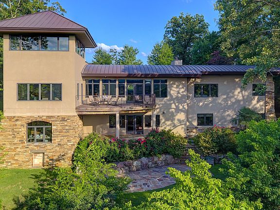 HIGHPOINT is a delightfully unique 4 bedroom, 4.5 bath home built by an architect & his artist wife for family & entertaining. Maple clad barrel ceilings & expansive views greet you as you enter.The colorful glass kitchen backsplash was created by lady of the house. The jewel box half bath has Italian tile & a James Hayes sink. Master has incredible views & custom designed built-ins.The bath has more custom glass work. But ,the true cherry on top is the Crow's Nest with its 360* views & curved built-ins !!