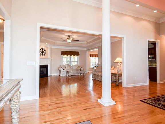 SQ FTG from builder's listing. Corner lot, stately presence, quality brick construction. Grand entry foyer, fine embellishments, custom moldings, corner fireplace, grand sunroom, sparkling hardwood floors, tile baths, volume ceilings. Kitchen has eating area w/breakfast bar, SS, granite and tile backsplash. Deluxe master w/dual walk-in closets. Private upstairs with full bath, bedroom & bonus rm/5th BR w/closet & large storage area. Aggregate driveway & 3 car garage. Subject to court approval.