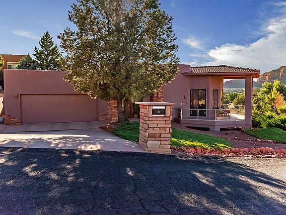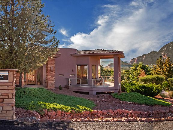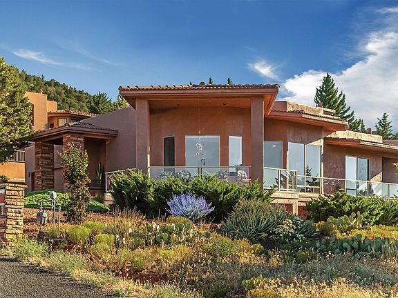A Sedona Gem with Breathtaking 180-Degree Views!This contemporary styled home sits on an elevated lot in Saddlerock Homes subdivision and captures all the inspiring views of the northern and eastern Red Rocks! The home is all one level with attention to detail at every turn in its 2406 sq. ft. design with 3 Bedrooms and 2 baths. The angles of the home are designed to wrap the home around the iconic red rock views which are predominant from the living room, dining room, kitchen and owner's suite. 556 sq. ft. of outside decking with tempered glass railings expand the enjoyment of the views and wildlife. Subtle curves in the interior wall design quietly add a thematic congruence to the home. SEE INFO ON LOT SPLIT IN SUPPLEMENT.