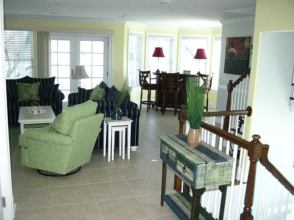 This luxurious townhouse is located at the Cape May Marina in the Spicers Creek community. It is a sprawling townhouse with plenty of room for all to enjoy. The marina offers a tranquil setting with boats, marshes & beautiful sunsets. Bring or rent a kayak or paddle board and put in at one of the nearby docks. You can paddle to the Lobster House and pull up to the dock and enjoy lunch or a cocktail on the Schooner! (http thelobsterhouse.com/schooner-american/) An easy 5 minute drive, 9 minute bike ride takes you to the most beautiful ocean beaches on the Jersey shore. Some of Cape May's favorite restaurants and pubs are just a few blocks from the house. Washington Mall area is a pleasant walk or 5 minute drive as well. You are close to everything at this location. The townhouse has four levels with an elevator that is accessible to all floors. The 1st floor has a bedroom with an en suite bath. On the 2nd floor there are three bedrooms, one of which has an en suite bath and sitting area. There is also a hall bath on this level. Level three is the main living area with a beautiful well appointed kitchen, a dining area, and a large family room with a gas fireplace. The entire 4th floor makes up the main master suite. The home was first occupied for the first time in 2016 with all new furniture and decor. Come enjoy your holiday at a gorgeous home with the finest of amenities. Check out http capemaymarina.com for boat slip rentals! A beach box, where you can store your chairs and umbrellas and other beach gear, is at Trenton beach(Located off Trenton Avenue, in front of La Mer hotel). Rented weekly in summer season at $3600 per week. Weekly rates off season from $2000-$2500 depending on time of year. Daily rates available with 3 night minimum off season $400 or $450 per night depending on time of year.
