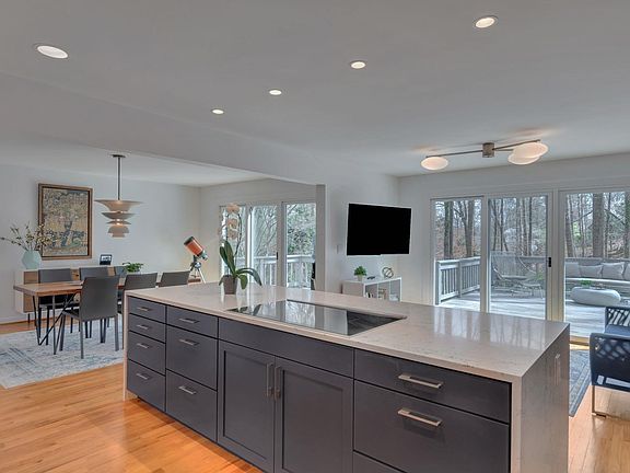 Elegantly updated contemporary home in a traditional neighborhood. Major remodel and update in the last six months: New roof, new HVAC system, new electrical, refinished hardwood floors, an updated kitchen and pantry, new built-ins, new music room above the garage, new bathrooms which include a steam shower and heated floors in the master, new D-box, new carpeting, updated landscaping and more. Upward of $600K in design and improvements. The home, which is in a cul de sac, sits on 1.74 acres of lawn and lush forest. It is walking distance from the Boar's Head Resort and Sports Club and the Ragged Mountain reservoir. The home is in the highly rated Western Albemarle school district.