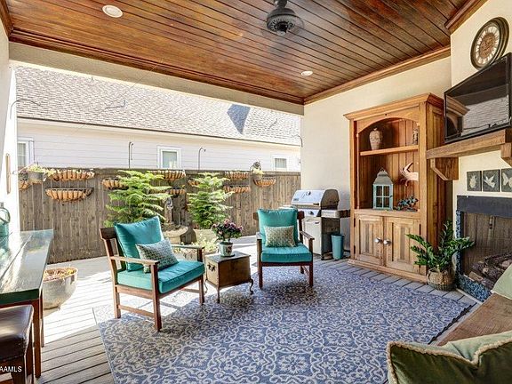 Better than new with all the bells and whistles builders will not provide in new construction! Outdoor fireplace, decked patio, and wine cooler are just a few of the upgrades offered in this custom home. This cute as a button cottage sits in the desirable Couret Farms with all its amenities and events offered by the development. All of your boxes will be checked off here! Dining- Romacellis Bistro on site and more restaurants coming! Workouts- Anytime Fitness! Pool- Coming soon! Live Concerts- scheduled by Couret Farms in Abilene park in spring and fall. Walking or biking- large pond with walking and biking trail! You are welcomed by the cutest cottage ever with its professionally landscaped yard and welcoming front porch.Inside you immediately see how meticulously cared for this home is. Entering the foyer you notice it is an open floor plan with beautiful wood flooring, triple crown molding, and light contemporary colors. The great room has a cozy gas fireplace, a stained wood mantle and gas fire logs ready to warm up by. In the kitchen the island is huge, seats 2 for informal dining, and is ready to roll out cookies. And how about a glass of wine from your wine cooler in the island! The granite is 3 cm and a beautiful light color. The cabinets are custom and white with pull out garbage storage and book shelves at end of island. It doesnt stop there, kitchen goes on to include large double door pantry, and upgraded stainless appliances including convection microwave and oven. Master suite is large with a large master bathroom, dual vanities, separate shower, door to water closet, and huge closet. The guest bedrooms and bath are all nice sizes and on other side of home giving master suite all the privacy it deserves. The utility room is huge with extra storage/broom closet and a mud sink. The patio is a must see with a gas fireplace(upgrade) and a stained wood mantle with a mounted TV that stays with home! The patio is all decked with a composite decking! This is a very low maintenance home with very little grass other than front yard; it has a dog run for your dog babies! Just enjoy your time off and relax out on your patio with that glass of wine in front of your fireplace while you watch the Saints or LSU! Live life well, this home is made for that! Call me to book your private showing before it is TOO LATE!