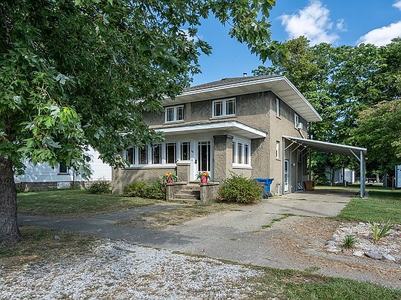 Charming and historic 2 story home in a quiet town. The house features a spacious living room with hardwood floors and large kitchen on the main floor. There is also an enclosed porch. Upstairs is 2-3 bedrooms with hardwood floors and a bathroom. The basement is a full-sized, unfinished basement that is perfect for storage. The back yard is very large as well. Recent updates include a 4 year old roof, 1 year old furnace, new incoming water lines for the main floor and newer wiring with 200 amp service. There is also a carport next to the house.