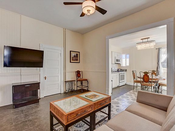 Beautiful Historic Furnished, short term Apartment for Rent with All utilities included! This downtown historic mansion was just meticulously renovated! For rent is a 1 bedroom 1 bath apartment with tons of old world charm. Enter into the living room with tile inlays and beautiful wood molding. The living room has tons of light and opens to the eat in kitchen. The kitchen features tile floors, granite counters and white shaker cabinets. The bright bedroom has huge windows, porch access and a fireplace (unfortunately it does not work and is only for looks). There is a 3/4 bath and lots of storage. This unit has all utilities included including WIFI! Residents here are welcome to enjoy the common space of the large covered front deck, the yard and have access to the laundry room.