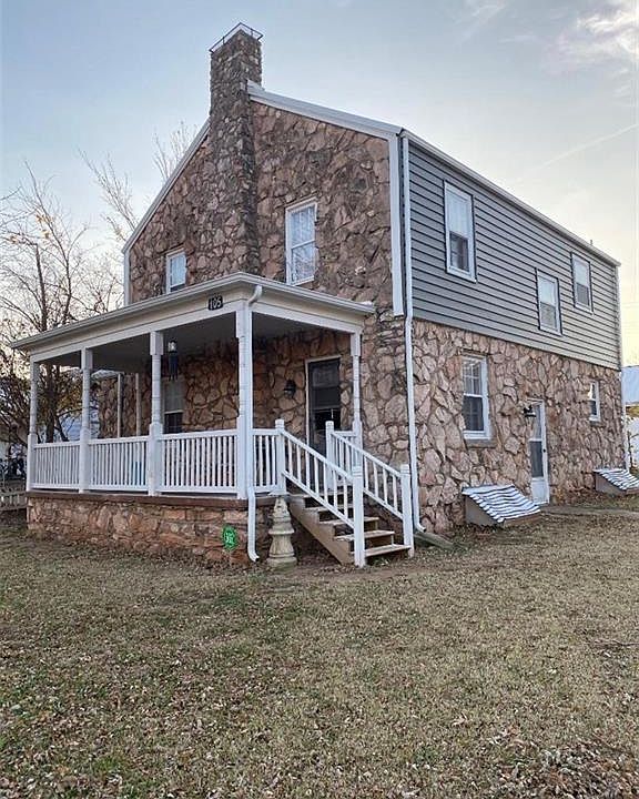 Located in the heart of Geary, Oklahoma, this spacious home is within walking distance of downtown. The two fireplaces were very helpful in this year's ice storm. New paint, ceiling fans, light fixtures, new trim in kitchen and mud room. The back yard has a rock fire place with partial rock fencing. The basement is finished out and the large room can be used as a bed room, office, theatre room, craft room, man cave, wine cellar, home gym, game room, storage... the possibilities are limitless! Laundry shoot from top floor to basement. All utilities (electric, gas, trash, sewer, and water) average only $300 a month in this large two-story, with basement home.