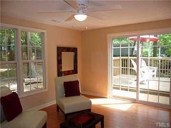 Completly renovated ranch in the great Cary location! New carpet, paint, kitchen cabinets & countertops, & new laminate wood floors. Cathedral ceiling in living room opens to dining & kitchen areas. Multi-level deck overlooks large, private fenced backyard. Large sunroom (not incl. in sq footage). Close to shopping, I-40, 54 and RTP. No HOA dues!