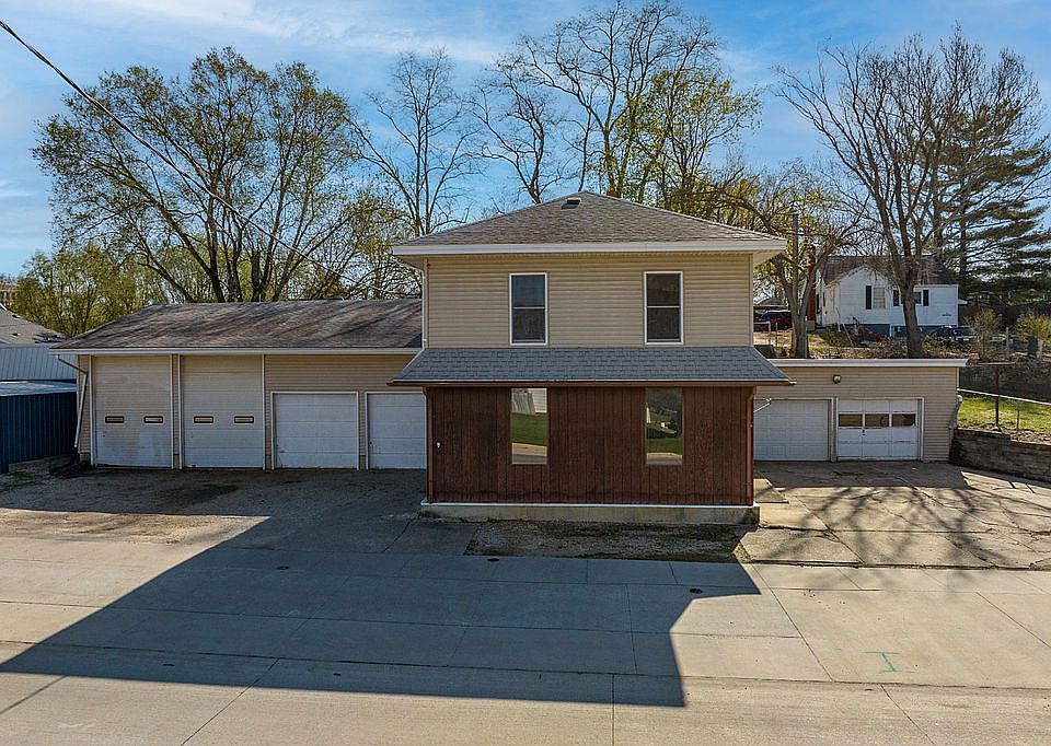 **Price Reduced** This spacious 2-story home, with 6 stall garage is located in Anamosa. The main living area located on the upper level includes 3 bedrooms, a full bath, kitchen, laundry, and a deck off the primary bedroom that opens to the back yard. The main level features an open-concept studio with large windows, a kitchenette, and a full bath. An additional laundry room, a half bath, and a storage room connect your garage space. Full walkout attic off the upper bath for additional storage over the north garage. You will have plenty of shop space with 4 stalls on the north end, and 2 with high ceilings. The 2-stall south end has a furnace; airlines and 220v outlets in all shops. Property Improvements: - Roof - 2010