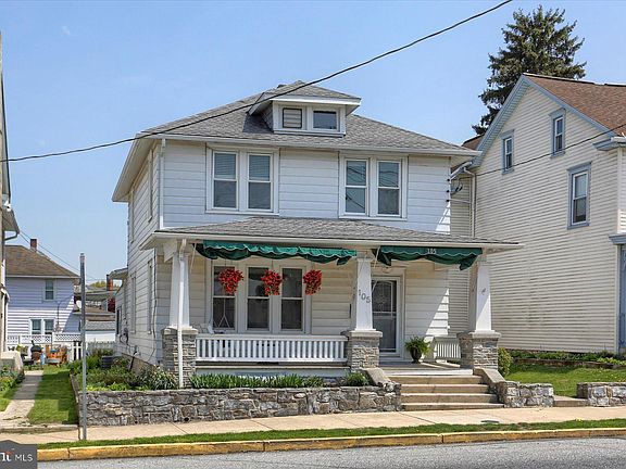Welcome to this charming American Foursquare with Victorian vibes. This property is located in the heart of historic Hummelstown and offers 3 bedrooms and 1.5 baths. You'll be greeted by a classic covered front porch, stone accents, and timeless curb appeal. Step inside to hardwood floors, rich wood trim, and a layout that offers a hint of Victorian flair- think tall windows, warm wood tones, and cozy elegance. Enjoy convenient on-street parking and a fantastic location just minutes from major commuter routes, schools, and walking distance to parks, shops and restaurants. Seller offering a basic 1 year home warranty from First American Home Warranty.
