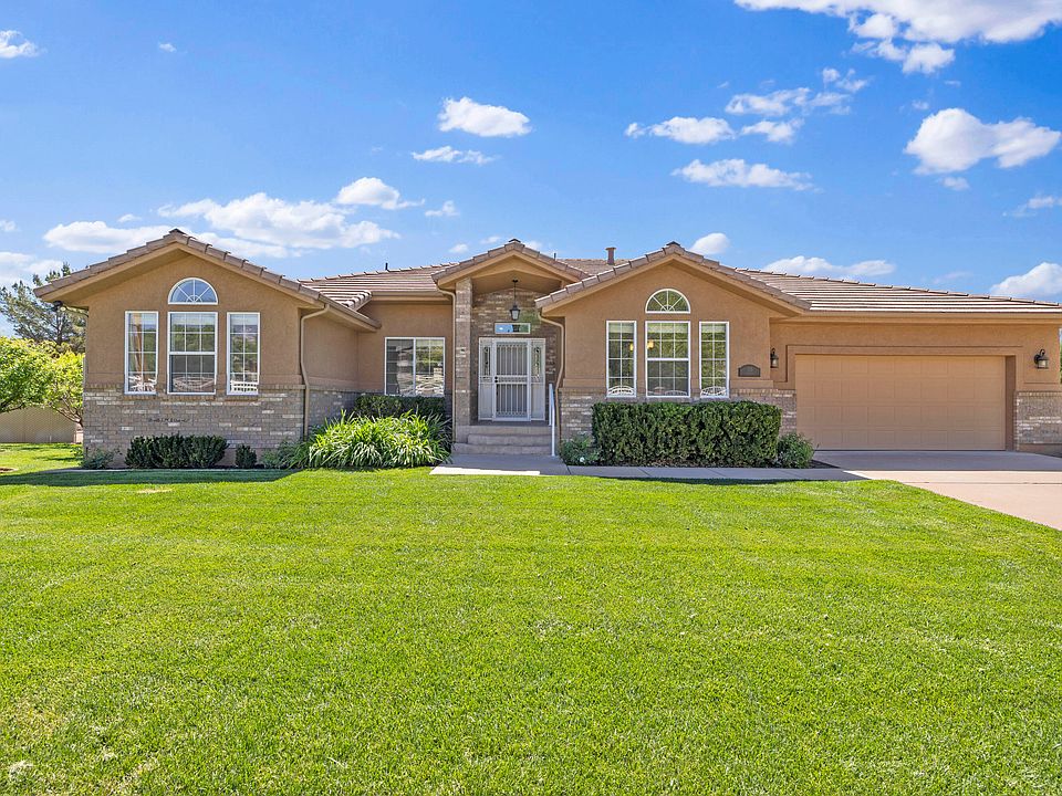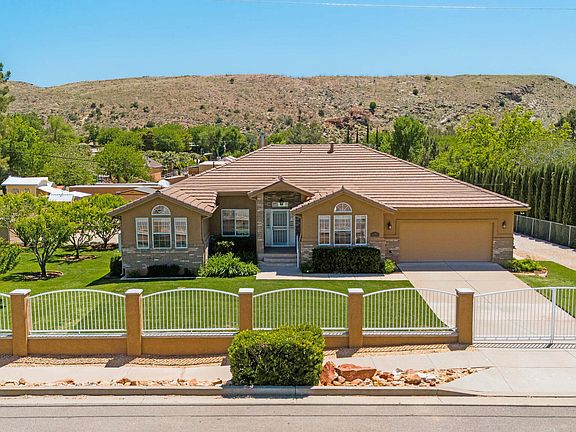 True pride of ownership is evident on this pristine 1.5 acre estate. Fully fenced and gated with too many features to list! New paint throughout, detached RV garage, 34 solar panels with 20kwh battery backup, custom cabinetry throughout, high end finishes and appliances, greenhouse with 2 swamp coolers, TWO 40 foot insulated storage containers with air conditioning, 15 tree orchard, huge built in home office, and SO much more!! Come see this amazing estate while you still can!