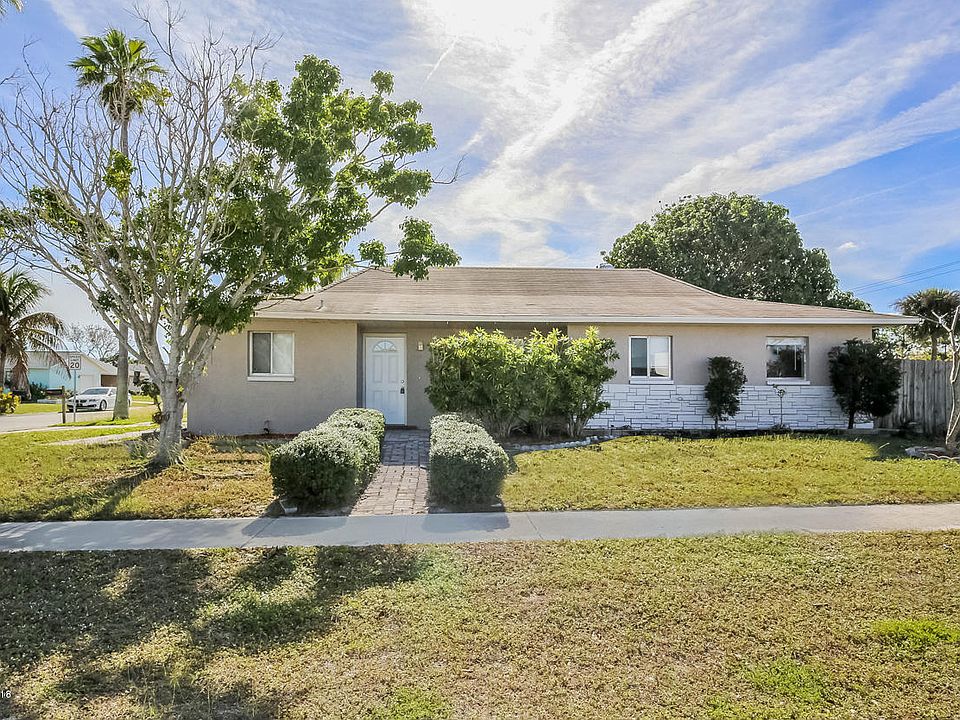 Nice house is ready to become your home. This Merritt Island house is 3 bedrooms and 2 bathrooms with a large family room. New Stainless appliances and granite counters throughout . Freshly painted inside and out as well as new carpet in all the bedrooms. Spacious and fenced corner. Great location, close to Beaches, shopping and restaurants.New AppliancesNew Granite in Kitchen and bathroomsNew Electrical PanelNew LightsNew Plumbing fixturesNew BlindsNew Paint Inside and OutNewCarpetNew French doors to deck New Front door