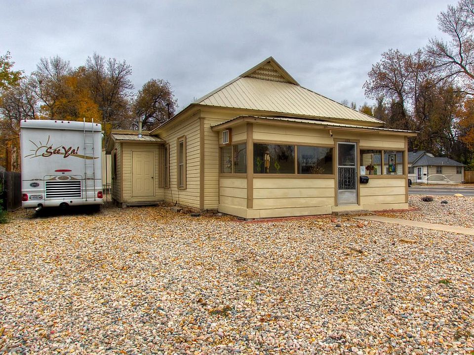 Lots of possibilities! Quaint like Grandma's 3 bedroom, ranch home on a huge lot in the heart of downtown Loveland. Single car attached garage Plus a HUGE detached garage over 869 sqft. Eat-in kitchen, large separate dining room and living room with wood floors. Great sunroom in the front of the house. Includes an original storageshed/POPCORN SHACK from the early 1900's. Great location zoned RE3. Just steps from the newly redeveloped downtown Loveland. Short distance to shopping and parks.