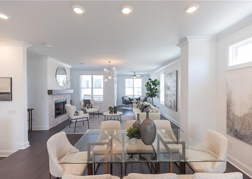 New Year, New Home, New You!! This community is a highly desirable area, which is close to GA400, restaurants, shopping, amphitheater, fairgrounds, Cumming City Center, The Collection, Lake Lanier and so much more. The Glendale floor plan is a 3-story, rear entry garage plan that features the entrance on the Terrace level. Upon entering the terrace level, you find double doors that lead to a private bedroom and bath - a perfect space for guests. Head upstairs to the main floor which features an open concept with family room, dining room and Gourmet Kitchen. The kitchen is beautifully designed with a neutral palette, quartz countertops, 3x8 tile backsplash, stainless appliances and single bowl sink. The large island gives you lots of prep space for dinner. Beyond the dining, family room and sunroom are a nice size deck that has wooded views adding to the privacy and relaxation of this carefree lifestyle. Upstairs you will find a spacious Owner's suite with large WIC. The owners bath offers a tiled, walk-in shower and dual vanities. Down the hallway is a secondary bedroom & private bath. The laundry room is located on the upper level for easy convenience. This community is in a highly desirable location located in downtown *Pictures are of a previously built home and floor plan by The Providence Group, Photos are for representation purposes only and are not of the actual home or floor plan since this home is currently under construction. Estimated Completion date is February/March 2024. [The Glendale]