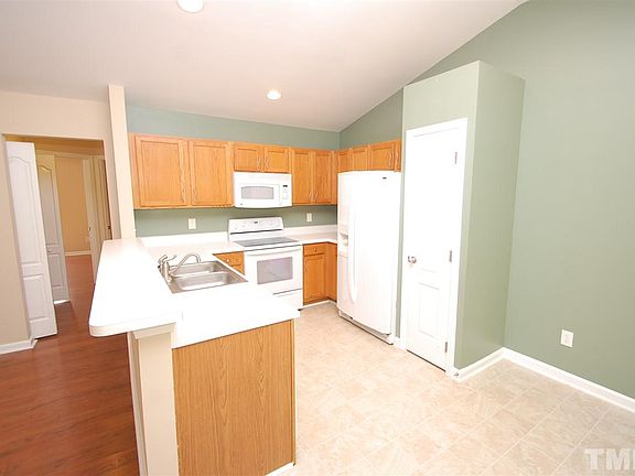 RARE opportunity to have 3 bed/2 bath RANCH with no steps & TWO CAR GARAGE! Great open floor plan w/ lots of light and vaulted ceiling. Split bedrm design w/ master suite, walk-in closet & mstr bath on one side. Pergo flooring throughout. Private & completely fenced rear yard. Quite street. Convenient to Major shopping, restaurants & 540 beltline. TWO community pools and playground. Around corner from 160 Acre Apex Nature Park. No dogs.