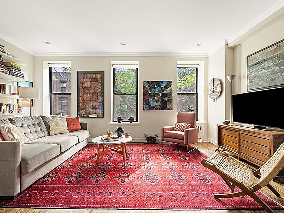 With a location that is second to none, 105 St. Marks Place #2 is a bright, spacious two-bedroom, two-bath floor-through condo, with a coveted built-in home office area and extremely low monthlies. On the second floor of a renovated three-unit townhouse, on lovely tree-lined St. Marks Place in North Park Slope, this home has great proportions and a lofty, airy feel.