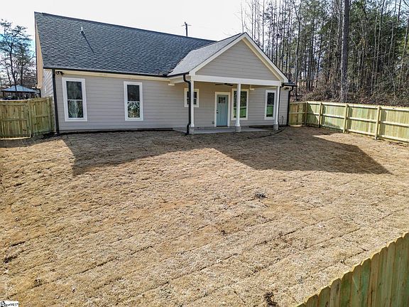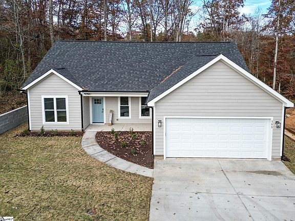 Welcome to 105 Sangamo Dr! This High quality new construction home gem sits on .27 acre offering single-level living and an inviting open floor plan with NO HOA. Just 10 min from award winning downtown Greenville and completely move in ready. As you walk up the paver lined driveway and front sidewalk you will be greeted with a stunning rocking chair front porch and wooden groove ceiling. 9 ft ceiling through out and open floor plan await inside as you walk into a breathtaking entrence. The living room specially designed with a delightful trey ceiling, recessed light and marvelous chandelier for a astounding welcome. The kitchen has upgraded cabinetry, quartz counters, large island, and stainless steel appliances. To the Right of the home you will find the master room suite with a walking closet and delightful master bathroom. The master bathroom has double sink, quartz counter top, tile shower and its own private water closet. Also on the right side of the home you will find a spacious utility room with upgraded cabinetry, and a mud room leading into the double garage. To the left of the home you will find the other 2 sizable rooms and a full hallway bathroom. The covered 8 x 19 rear patio with groove ceiling, recessed light and a perfectly place fan will allow you to enjoy your outdoor space to the max with plenty of greenery and tress in your back yard for privacy. Don't forget about the tankless water heater, sound system, and upgraded smart front door lock that makes this home even more exclusive!