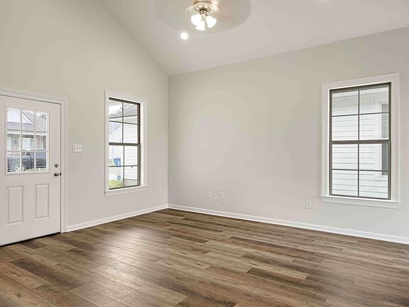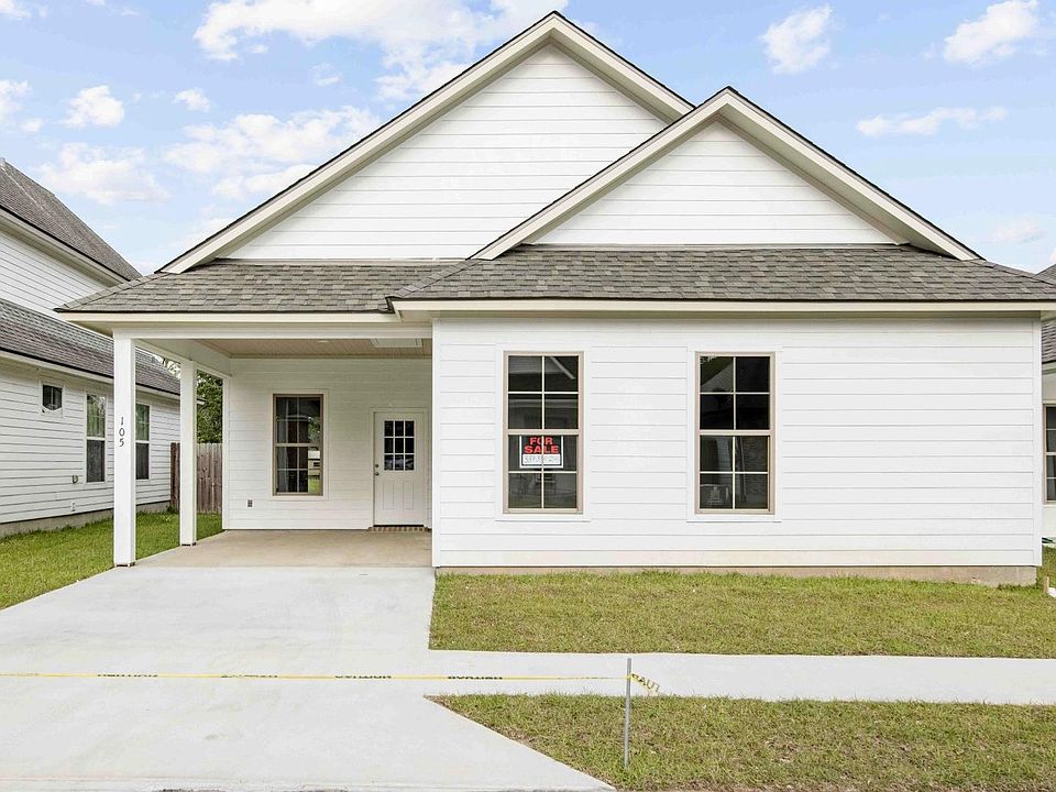 This charming newly constructed home for rent awaits you. The 1,300 sq ft home has three bedrooms and two bathrooms. The home is located in Youngsville @ 105 Santa Marta Drive off of Fortune Road. The interior of the home has a lovely, open floor plan consisting of a spacious living room, kitchen, and dining area. The living room area is designed with a cathedral ceiling, a drop down ceiling fan and led recess lighting. The home has 9 ft ceilings and the flooring is waterproof wood plank vinyl flooring through out the home. The kitchen has a pantry closet, stainless steel appliances consist of refrigerator, electric range and dishwasher, garbage disposal, granite countertops, and a snack bar/counter. The home is designed with a split floor plan. Both bathrooms have modern fixtures and granite countertops. Master bathroom has a double vanity and a extra large walk in closet. The home is equipped with a tankless water heater and is an all electric home. The exterior of the home has a single carport and a fenced in backyard (added after pictures were taken). Call today for your appointment to see this beautiful home.