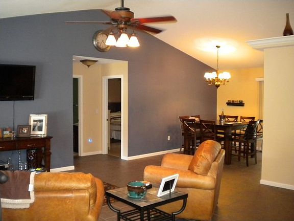 Gorgeous home, move-in-ready! No need to worry about allergies in this one, NO carpet!! Gorgeous ceramic tile and wood laminate throughout entire home. Stainless steel appliances compliment the custom Maple cabinetry, designer tile in master bath, chandelier in dining room, room darkening shades in master bedroom, lots of fresh paint throughout, vaulted ceilings with planter box. Planter box has moldings and lighting. Large crawl space 5'10 tall per owner. dry and large for storage, beautiful covered deck (recently sealed) and reinforced concrete patio perfect for a hot-tub. Home is equipped with alarm system and is situated on cul-de-sac.