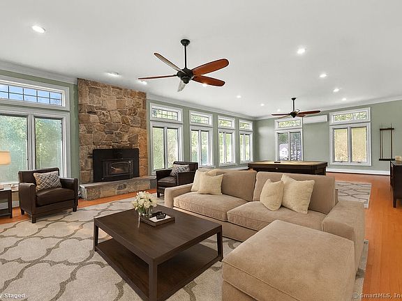 Country living meets modern comfort in this 4-bedroom, 2.5-bath Colonial set on 3+ private acres with access to Bolton Land Trust Trails. Offering nearly 3,900 sq ft of living space, including an 1,800+ sq ft addition, the home features updates that matter: a brand-new 50-year architectural shingle roof (transferable warranty), updated mechanicals, solar panels, and multiple wood stoves for efficiency. Inside, a welcoming foyer with 10' ceilings, crown moulding, and built-ins opens to the centerpiece of the home, a stunning living room filled with natural light from oversized windows with transoms and anchored by a striking fieldstone fireplace. The adjacent sunroom flows seamlessly to a wrap-around patio for entertaining, while the dining room doubles as a cozy lounge with a second fireplace and wood stove insert. The kitchen offers a generous layout with eat-in space and patio access. A first-floor bedroom or office with built-ins, plus a powder room, complete the main level. Upstairs, the primary suite is joined by two bedrooms, a full bath, and laundry. A walk-out basement and flexible floor plan create future potential, including a private-entry in-law setup. Outdoors, a circular driveway provides easy maneuvering for multiple vehicles, trucks, or trailers-ideal for a workshop or home business. Additional highlights include a detached 3-car garage with solar, two-stall barn, paddocks, fenced yard, and chicken coop. Minutes to I-384, I-84, UConn, and Hartford, 105 School Road offers privacy, flexibility, and endless opportunity.