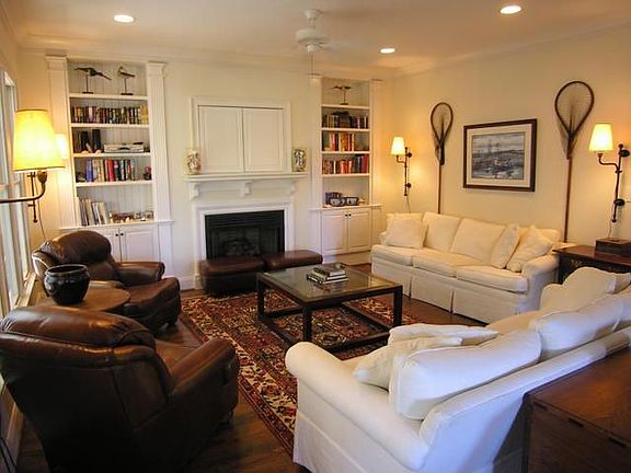 Gorgeous, custom built home nestled on a secluded lot directly across from boat slip with lift and a stone's throw from private beach access, pool & tennis courts. The best of beach & the sound in a wonderful golf cart community. Open floor plan and private bath for each bedroom. Conveys with slip #5 in the protected, deepwater marina.