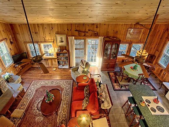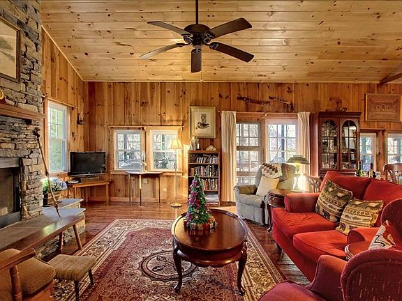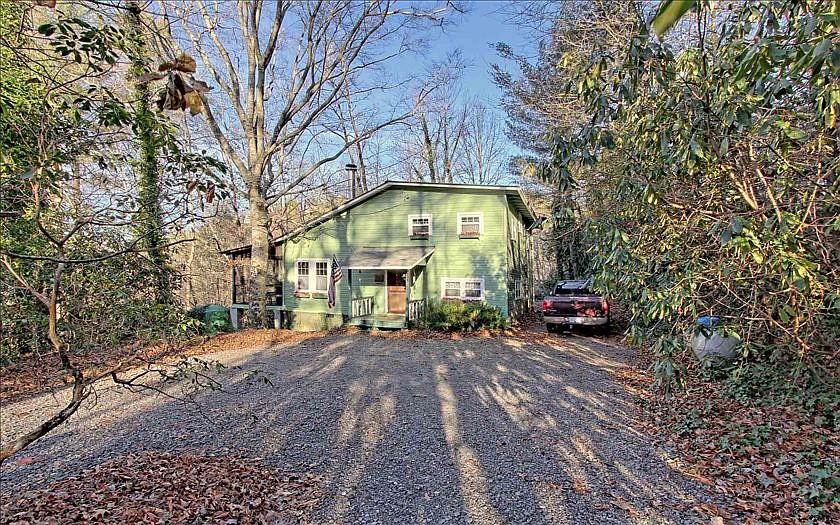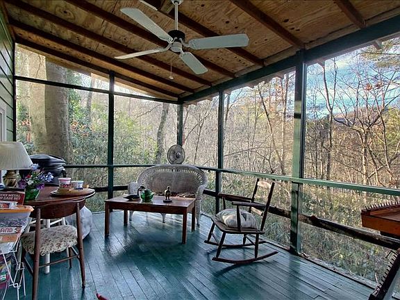 Sitting on just under an acre of land & nestled nicely in the woods, the character & charm you feel when entering this home will make you leave your worries at the door. The open floor plan features floor to ceiling stack stone FP, tongue & groove ceiling, refinished original wood floors, & eat-in kitchen w/ tile floors. Large screened porch is perfect for enjoying the mountain air & outside dining. Master BR & laundry on the main floor. Second BR is in the Open Loft area w/ half bath. Built in seating has storage space underneath. Outside features include circular drive, firepit area & access to crawl space. Home has all new windows, heat/air system,& dryer. This cozy home would make a great VRBO or AirBNB or private getaway. Home is being sold furnished w/ exception of a few items.