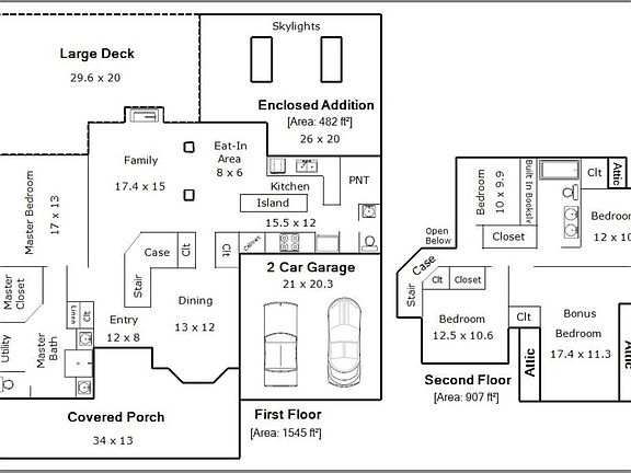 Home features fenced in back yard, first floor master, and 3 season room off kitchen and deck. Two story open living room, 2 car garage and very large front porch. Office (or bedroom) boasts built in cabinets, and the bonus room is great for entertaining - or perfect for a large bedroom. Attic storage.