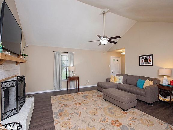 Welcome Home!!!! Three Bedroom Two Full Bath Daphne Home located on a quiet culdesac. Home features open and bright living room with vaulted ceiling and wood burning fireplace!!! Great open floor plan! Very spacious eat in kitchen!! Kitchen features granite counter tops, stainless steel appliances, and counter seating!! Spacious Bedrooms!! Full Bath in hallway features new tile flooring and granite vanity top! Rustic master suite with wood beam ceiling!! Master bathroom features Granite Vanity top, tile shower, and tub!! Enjoy peaceful moments or entertaining on your screened in back porch and full fenced in private back yard!