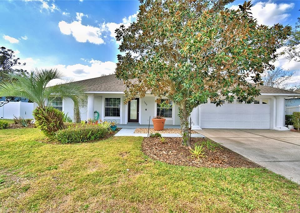Welcome home to this custom built 4 bedroom pool home located in the gated community of Shaddock Estates. This home sits on a little over a quarter of an acre with 83 foot lot frontage by 138 foot deep, and boasting a total of 2,762 square foot under roof with 1,937 sqf heated. As you approach the front of the house there are magnificent round columns around the large covered patio entrance. When you enter this Mediterranean style home take note of the amazing cultural decorative tile wall art in the foyer as well as the primary bathroom ensuite. The home has tile floor through out the living area and carpet in several of the bedrooms. This home has high vaulted ceilings making this split floor plan feel very spacious. As you enter you will find the formal dining room to the right just off the kitchen. Enjoy making meals in this spectacular kitchen with a gourmet double oven range and stainless steel side by side refrigerator. All kitchen appliances convey with the home. The large family room offers amazing views of the fully screened in pool as well as views from the kitchen and primary bedroom. The oversized primary bedroom ensuite has a fabulous corner spa garden tub and separate walk in shower. Step out back under the covered patio to entertain your guest and enjoy spending time poolside while taking in the calming sounds of the pool's waterfall. The exterior metal pet fence conveys with the house. The AC unit was replaced in 2023. Schedule your showing today