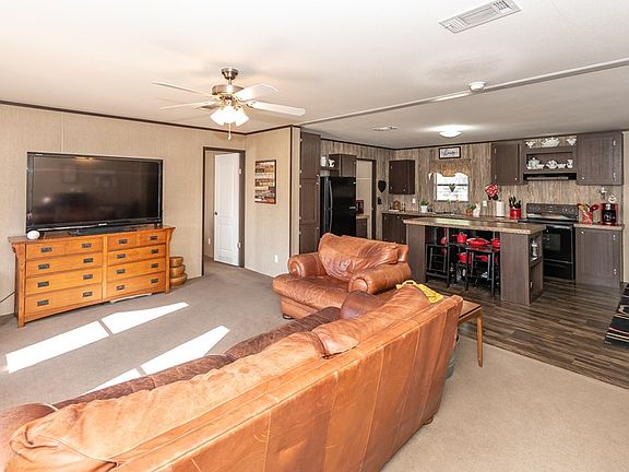 Out of town privacy on .41 of an acre! This 4/2 was manufactured in 2017 and features an open concept living, dining and kitchen. Split bedroom floorplan and a generously sized back deck! The backyard features 2 storage buildings and an above ground pool!