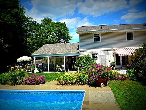 Every season is beautiful in this well maintained home in the desirable neighborhood of Bradford Park. Situated on almost an acre, this home is an entertainers dream with a private, park-like yard, gorgeous landscaping, in-ground pool and expansive concrete patios. Newer roof, gutters, downspouts, siding, soffit & fascia. New concrete front walkway & patios. This home is move-in ready with brand new carpeting throughout. Family room boasts wood-burning fireplace and French doors out to patio area. The spacious kitchen is equipped with timeless cherry cabinetry, granite countertops, SS appliances w/5 burner gas cooktop & double oven and ceramic tile flooring. Oversized master bedroom features walk-in closet and in-suite bathroom with radiant heated tub. Finished game-room with bar and den or home office. Two car attached garage leads right into kitchen. Quick commute to the heart of Cranberry, I79 & turnpike.