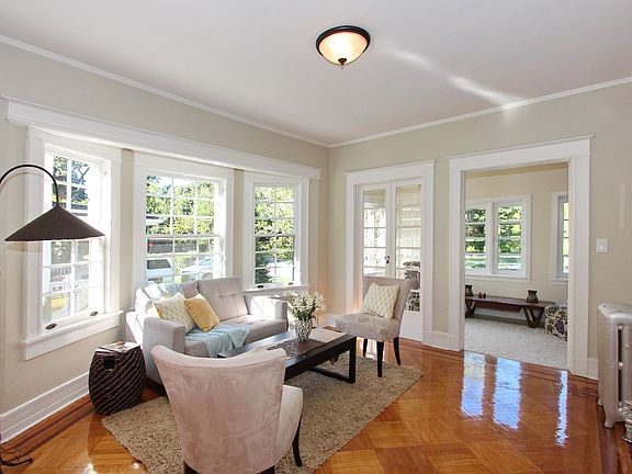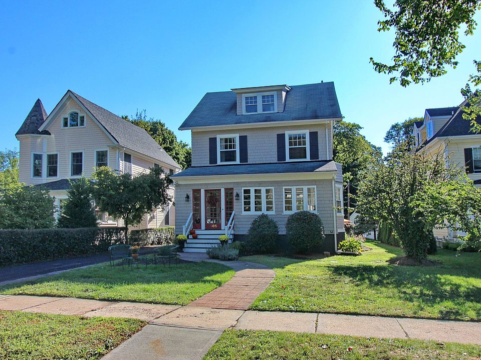 Charming colonial with Victorian touches throughout, completely remodeled and move-in ready! Located on desirable dead end street, with added benefit of lovely, deep, park-like backyard, just .3 miles to NYC direct train. This sweet home features bright sunny rooms, gleaming hardwood floors (incl. stunning parquet!), beamed ceilings, period moldings, and beautiful, beveled glass windows and French doors. Entry porch leads to parlor with fireplace, updated eat-in kitchen with brand new SS appliances and glossy tin ceiling, formal DR, LR with bay window, and heated sunroom with cathedral ceiling. Second floor features 4 full bedrooms and beautifully remodeled full bath. Bright 3rd floor surprises with 3 additional rooms and full bath, perfect for guest/aupair suite or master retreat! New gas furnace in tidy basement with laundry, root cellar, and 2 walkouts. Detached 2-car/2-floor garage with neat details. This delightful home is a must see