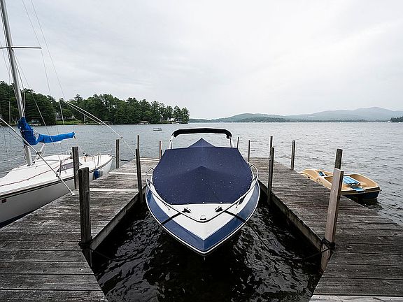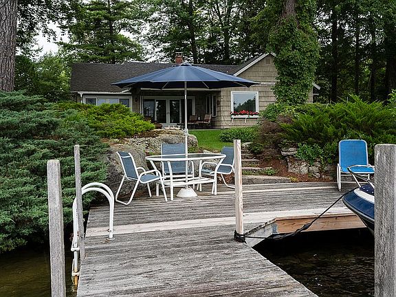 This guest cottage is part of the property and home also located at 105 Shore Rd. This exceptional waterfront property has only changed ownership once since 1934. Quintessential lakeside living on a level waterfront lot. Spend a quiet morning enjoying the sun rising over the island, slowly wakening the Lake as the distant mist on Sanders Bay gently lifts. Enjoy a day of spirited play from the raft, or kayak and paddleboard from the walk in natural sandy beach. The childsafe cove is set away from weekend boat traffic; its ledge markers keep extraneous boaters from all of the kid friendly swim areas of the entire cove off of Breezy Point. Take a break and explore the Big Lake by watercraft or hone your skills waterskiing and wakeboarding. Then relax on the bluestone patio, enjoying the cool summer breezes as the sun sets and backlit colors fill the Southeastern sky. Or enjoy a sunset cruise that includes an ice cream run that makes for the best dessert on a fun filled day with family and friends. Settle into the evening in solitude, relaxing on the covered porch listening to the gentle waves lapping on the sandy beach, while loons call in the distance. At night gather around the fire pit at waters edge under a dreamy star filled night sky, as the moon rises and casts a silvery shimmer on the quiet waters. Escape from the hectic pace of the city or suburbs to comfortable, stress free lakeside living. The shabby chic home and its separate guest cottage sit on a private level lot: a rare find on the Lake and even more rare on Governors Island. The property is located on a dead end road extension that is essentially a private way. Walking distance to Governors Island 140 acres of hiking and cross country skiing trails. Easily accessible by car to the amenities of Gilford, Meredith, the Lakes Region, Gunstock Mountain, and the NH White Mountains.