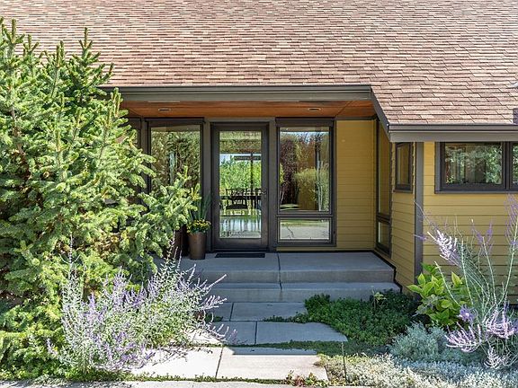 South Bozeman remodeled 4 bedroom modern gem on just over an acre in city limits, close to downtown, MSU & schools, end of cul de sac location with a creek running through bottom of property & direct access to Main St to the Mountains Trail system. Remodeled in 2009, this sunny private retreat offers main level living with contemporary wood panel details, flat yard space on the west side with gently sloping terrain to the east with natural landscaping. The property sits above other properties to the east, allowing 180 degree mountain views and spectacular sunrises, with a privacy buffer of mature aspens at the property boundary. A large chef's kitchen with separate pantry & breakfast nook, birch floors, main level master suite separated from other living spaces with private patio. New floor to ceiling windows in living and dining rooms, open floor plan and full walk-out lower level with large windows in every room opens to a patio with hot tub and your own private sledding hill.