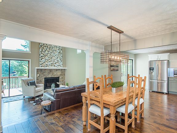 This 3 level home is located on one of the best lake lots with an easy walk down to the dock and water.This is a rare opportunity for a completely renovated, totally TURN KEY home with everything you see in the pictures included down to the silverware, art and kayaks (pontoon boat negotiable) Almost everything is new including floors, kitchen, baths, hot water heater's, HVAC and more. This house is totally smart where you're able to control almost the entire house remotely. The AC, water, stereo and even the sonic style pellet ice maker is controlled via Bluetooth. All furnishings are included with the sale of this house and almost all the beds are brand-new and almost all the art is custom done for this particular house. All five bedrooms have a spectacular view of the lake and the house has four separate porches to take in the beautiful Lake view (especially during fall). The lake access includes a custom fire pit with new Adirondack chairs circling it as well as a unique water access with gentle steps allowing pets and children easy access into the lake. There are very few docks on Lake Arrowhead that have a separate eating area and swing as well as a flat usable area for fun activities like corn hole or camping. There is even a 10' x 12' shed to hold all your lake toys that includes electricity and a fridge to hold all your cold beverages as well. There are not many houses this size on the lake with these type of finishes fully furnished for this price. If you're interested please inquire here. Owner has GA real estate license. Be sure and visit this link for more pictures. https://video214.com/play/XAGreE06qEwmg67HuFP3Zg/s/dark