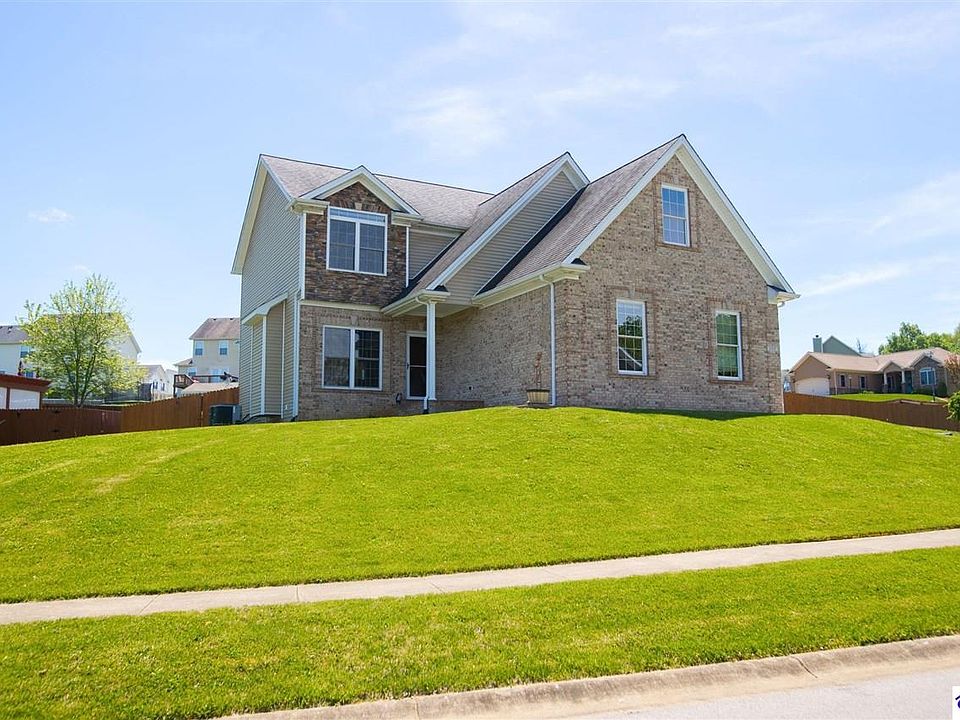 Beautifully maintained brick home in Elizabethtown, KY. Come and tour this move-in-ready spacious two-story home. This home features 4 bedrooms, 3.5 bathrooms, beautiful hardwood, and tile flooring. The eat-in kitchen features brand new appliances, kitchen sink and faucet, granite countertops, a tiled backsplash, a large island, tons of cabinets, and a built-in desk. The formal dining room has an arched doorway, trey ceiling, and crown molding. It also features a huge pantry off the kitchen with a main floor laundry. The open living room has plenty of space and a gas log fireplace. The master bedroom features a massive walk-in closet, double vanity, and the master bathroom features a whirlpool tub and a separate shower. This home has a full basement which is 95% finished. Which also includes a bedroom, a full bathroom, and a family room with a fireplace. It is also located in a sizeable corner lot with a large backyard, a brand-new deck and fence, a storage shed, and lovely landscaping. The home also has a two-car garage, concrete driveway, and more. All conveniently located just minutes to schools, shopping, dining, and Fort Knox! Come and tour this wonderful home today!