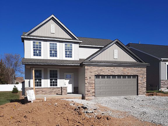Two-story Ash on in-grade home site w upgraded luxury vinyl plank at foyer, pass at stairs, LL flex room, great room, kitchen/café/pantry, laundry room, powder room. Upgraded ceramic tile at owner's bath. Upgraded carpet/pad w SpillGuard at stairs to 2nd floor, loft, hall to beds, all beds. 9' 1st floor ceilings, gas fireplace, 5 panel smooth white doors, black suede lever door handles. Upgraded Elegance Kitchen w quartz countertops, stainless steel appliances - dishwasher, gas cooktop, electric range, micro-wave, solid wood kitchen cabinets of dovetail construction w soft close, cabinet hardware, ice maker line. 2nd floor owner's suite w tray ceiling, private bath w double bowl sinks. All baths include matte black bath faucets, shower doors/trim, towel bars, tp holders. All bedrooms feature walk-in closets. High efficiency insulation, Pella Windows. Full yard sod, professional landscape package, irrigation system. ¾ Bath Rough In LL. Sump pump & pit. Ask @ 2.5% Special Finance Offer.