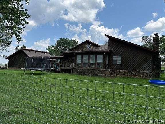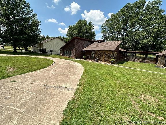 BACK ON THE MARKET AT NO FAULT OF THE HOME! Beautiful home (2724 sq. ft.) with 4 bedrooms, 2 bathrooms, 2 living areas plus a large dining room with a stone- framed wood burning fireplace. The home has an open kitchen-dining area, large eat-in bar area, custom countertops, attic fan in hallway, lots of storage, kitchen appliances to stay, ample size laundry room with a built-in ironing board, large master bedroom/bathroom with walk-in shower and large master closet. Fenced backyard with large wooden deck and a detached 3- car garage with storage, concrete circle drive plus lots of parking in front of garage. All of this sits on 3 large lots with room build, mature trees in backyard. Quiet neighborhood. Park like setting!