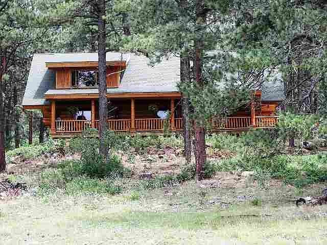 43 acres - HORSE PROPERTY that borders a trout fishing lake (40+ Acre). 26 IRRIGATED ACRES. Custom built log home - excellent condition. Open floor plan with lots of light, windows, hard wood floors and much more!!. 774 sq. ft. of wrap around patio / decking. Horse barn and stables w/ storage. Property is extremely private, heavily wooded, and arms length to National Forest border and access. Property is currently hayed and utilized for pasture grazing. SELLING BELOW REPLACEMENT COST!!!