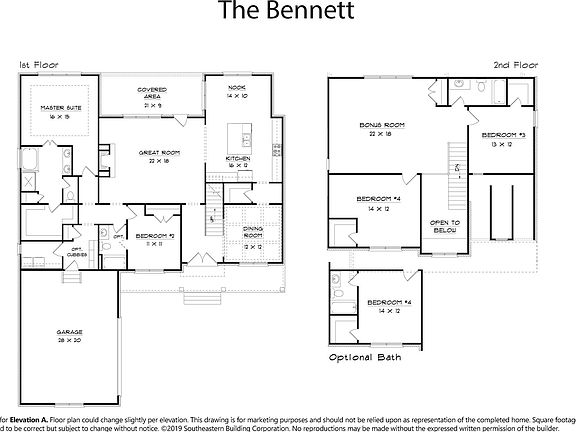 NEW PHASE IN HUNT CLUB NOW OPEN! The Bennett B elevation. Master on main level w/ secondary bedroom. 2 beds and large bonus room up. Spacious kitchen looking into family room. Hardwood in all main living areas down. Tile in full baths and utility room. Granite counters in kitchen w/ tile backsplash, SS appliances. Fully sodded front yard to front corners of home. 2 car garage.