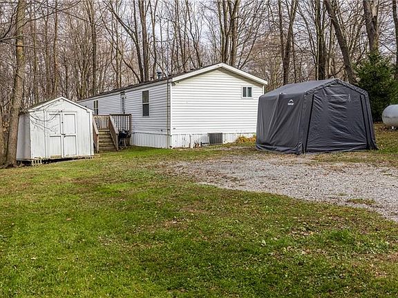 Live here year round or enjoy as a weekend retreat. This well maintained 3 bedroom, 2 full bath manufactured home is nestled on 1 peaceful acre. Master suite with updated bath(2021). Main bath updated (2018). Spacious eat-in kitchen with vaulted ceiling, island, and ample cabinet and counter space. Fresh paint throughout. New washer and dryer (2021). Central A/C (2017).Water heater (2017). Large deck to relax and take in the wooded setting. Storage shed. Mini carport for your side by side or additional storage space. Being sold AS-IS. One year home warranty included. Easy access to I-79 and Rt 422. Close to state parks where you can hunt, fish, hike, swim, bike, and more.