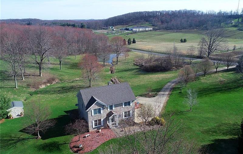 Country convenience in this full brick home with 2+ acre yard and long, full concrete driveway. Enjoy scenic grilling and relaxing or take a dip in the hot tub on the back deck while overlooking the neighboring pond and horse farm. Nicely updated, this spacious four bedroom home features an extra large kitchen with island and breakfast area, which opens to the expansive multi-level deck and rear yard. Family room with fireplace and lots of light. Large dining room and living room/office give this floor plan flexibility. Upstairs find four bedrooms (one currently being used as an office) with the master touting an updated bath and large walk in closet. The basement is sizable and could be easily finished for a work out room or man/woman cave. Shed included. Convenient location 5 minutes to Route 8, 10 minutes to Route 28, 8 minutes to the town of Saxonburg, 15 minutes to Butler, 7 minutes South Butler Schools. OGM's convey.