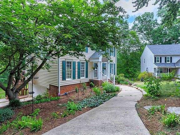 This wonderful home backs up to a lovely pond & is tucked away on a quiet cul-de-sac. Only 7 minutes & 2.5 miles from downtown Cary. Side entry garage that boasts basement space. Pecan hardwood flooring installed in 2019. New roof in 2019 with 50 year transferable warranty. New deck in 2021 to enjoy the view of the pond. Gorgeously updated owners suite bathroom. Kitchen has stunning granite counters, island, glass-front cabinets, & crown molding in addition to breakfast nook w/view of deck & pond from large windows. Formal living & dining rooms w/decorative molding & 2" blinds. Owner's suite w/2 walk-in closets. Beautifully landscaped with low maintenance perennial garden. Lots of storage off lower level garage. Optional swimming facility nearby. WOW!!