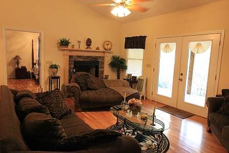Adorable cabin on wooded lot with deeded Lake Blue Ridge access! Popular split floor plan has 2 master bedrooms with large closets, 2 full baths with tile shower and jetted tub, living area and kitchen all on one level!, stack stone wood burning fireplace, beautiful hardwood flooring throughout the main level, full unfinished basement is stubbed for 3rd bath, drive under garage, large covered decks on both front and back of the cabin, screened-in porch, circular drive, private well. The gentle lot makes it great for the children or pets to play and the easy access to Lake Blue Ridge is just a minute's walk away! 06/14/13