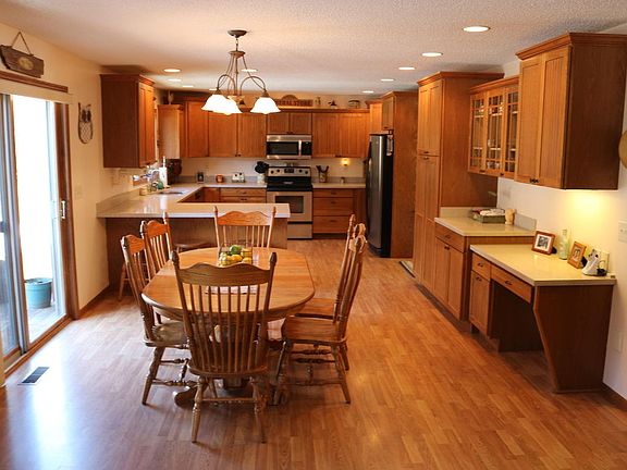 2005 BUILT CUSTOM CONTEMPORARY (4-5 BR/4 BATH) W/3 FINISHED LEVELS ON 3 ACRES-BEAUTIFUL SETTING MINS TO HOLMEN! FEATURES: OPEN CONCEPT/VAULTED GREAT ROOM (IMPRESSIVE LIMESTONE FIREPLACE), KITCHEN W/PLENTY OF FAMILY DINING SPACE (CUSTOM OAK CABINETS W/CROWN, SILESTONE, STAINLESS STEEL, SECRETARIAT, SLIDERS TO PRIVATE REAR DECK), SPACIOUS MAIN FLOOR MASTER SUITE (PRIVATE BATH: JACUZZI+SHOWER, DUAL SINK & WALK-IN CLOSET), COVERED FRONT SITTING PORCH W/VALLEY VIEW, 2 BRS+FULL BATH ON UPPER, CONVENIENT MN FLOOR LAUNDRY, WALKOUT LOWER LEVEL (DUAL ENTRY TO GARAGE, FAMILY RM+REC RM W/BUILT IN BAR+DINING SPACE FOR PACKER PARTIES, MUDROOM, GUEST BEDROOM-5TH BR/DEN), PLENTY OF STORAGE, WOOD BURNER, HEATED GARAGE. PLENTY OF LIVING SPACE, COUNTRY SETTING-MINS TO TOWN + SCHOOL BUS PICKUP AT HOME!