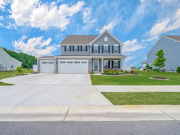Back on the market 1 day before closing due to buyer financing falling through. This stunning, like new, 2021 home has all the upgrades you've been looking for! Offering 5 bedrooms & 3 full bathrooms nestled on half an acre of picturesque pond front. Step inside to find 10 ft ceilings, tons of recessed lighting and beautiful LVP flooring throughout. At the entrance you are greeted with french doors leading to a playroom or what could be an office. The open concept floor plan seamlessly connects the kitchen to the living and dining areas, perfect for entertaining and convenient living. The gorgeous & modern farmhouse kitchen features sleek white quartz countertops, gas stove, double ovens & under cabinet lighting. The living room adds warmth & comfort with a focal point of a gas fireplace framed with brick extending to the ceiling. Downstairs you will also find one bedroom and one full bathroom. Moving to the second floor step onto a huge landing for additional living space. Retreat to the spacious primary bedroom featuring 2 large closets and luxurious bathroom with tiled shower and separate water closet! The laundry room, including a sink, provides connivence & functionality being located on the second floor. You won't run short on space with the remaining 3 bedrooms! The outdoor space is equally impressive with a beautifully landscaped yard with sprinkler system enclosed with a sturdy vinyl fence for privacy. A huge 3 car garage for your vehicles, lawn equipment & toys. Relax on the covered screened porch where you can savor the captivating pond views. Additional upgrades include: Generac hookup, 2 extra gas lines ran, tankless hot water heater, turned septic to allow for a pool, 50 year fence manufacture warranty & more! Don't miss your chance of owning this beautiful home in the Glenmoor subdivision of Currituck! Offering assumable 2.5% loan to VA eligible buyers!
